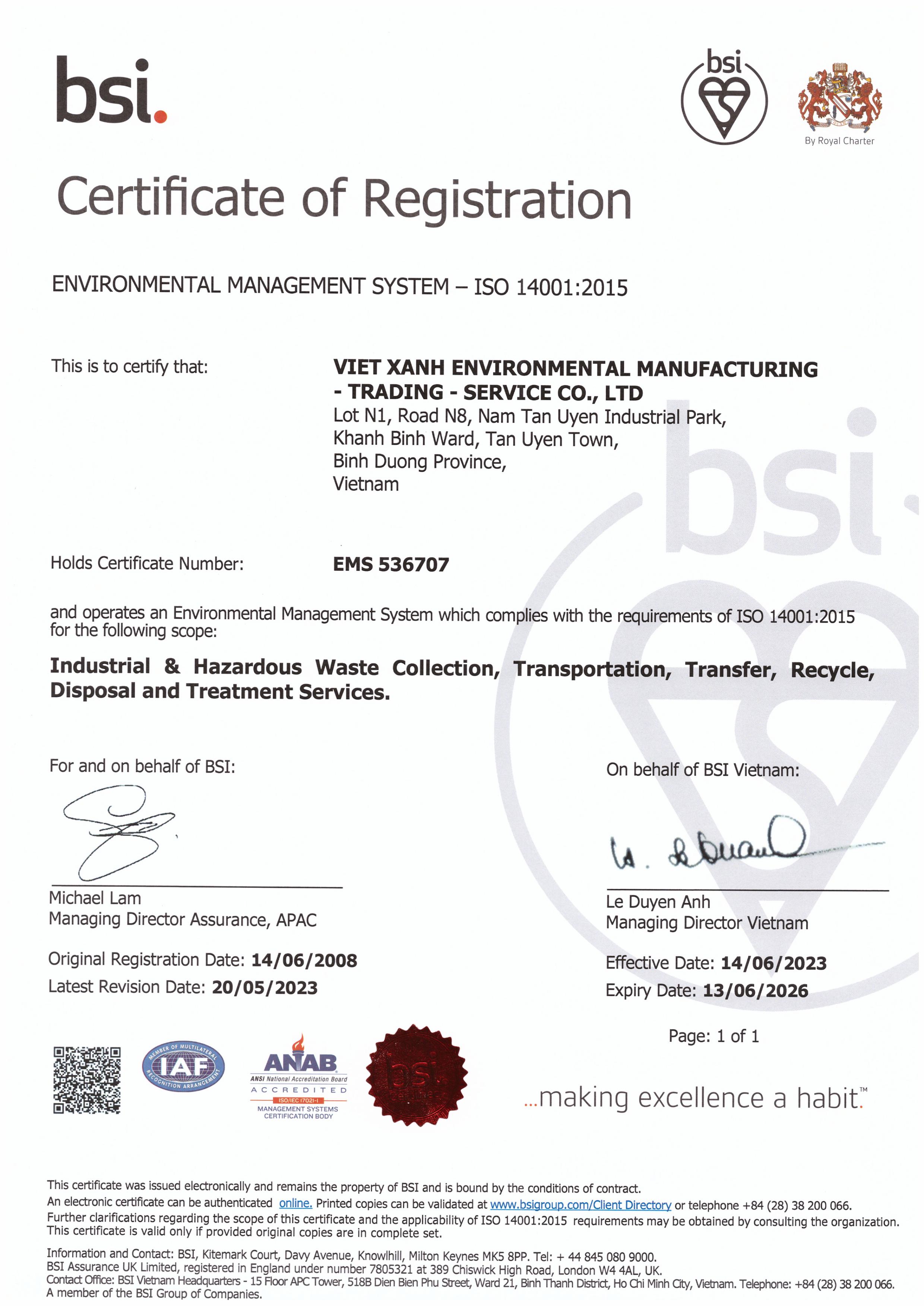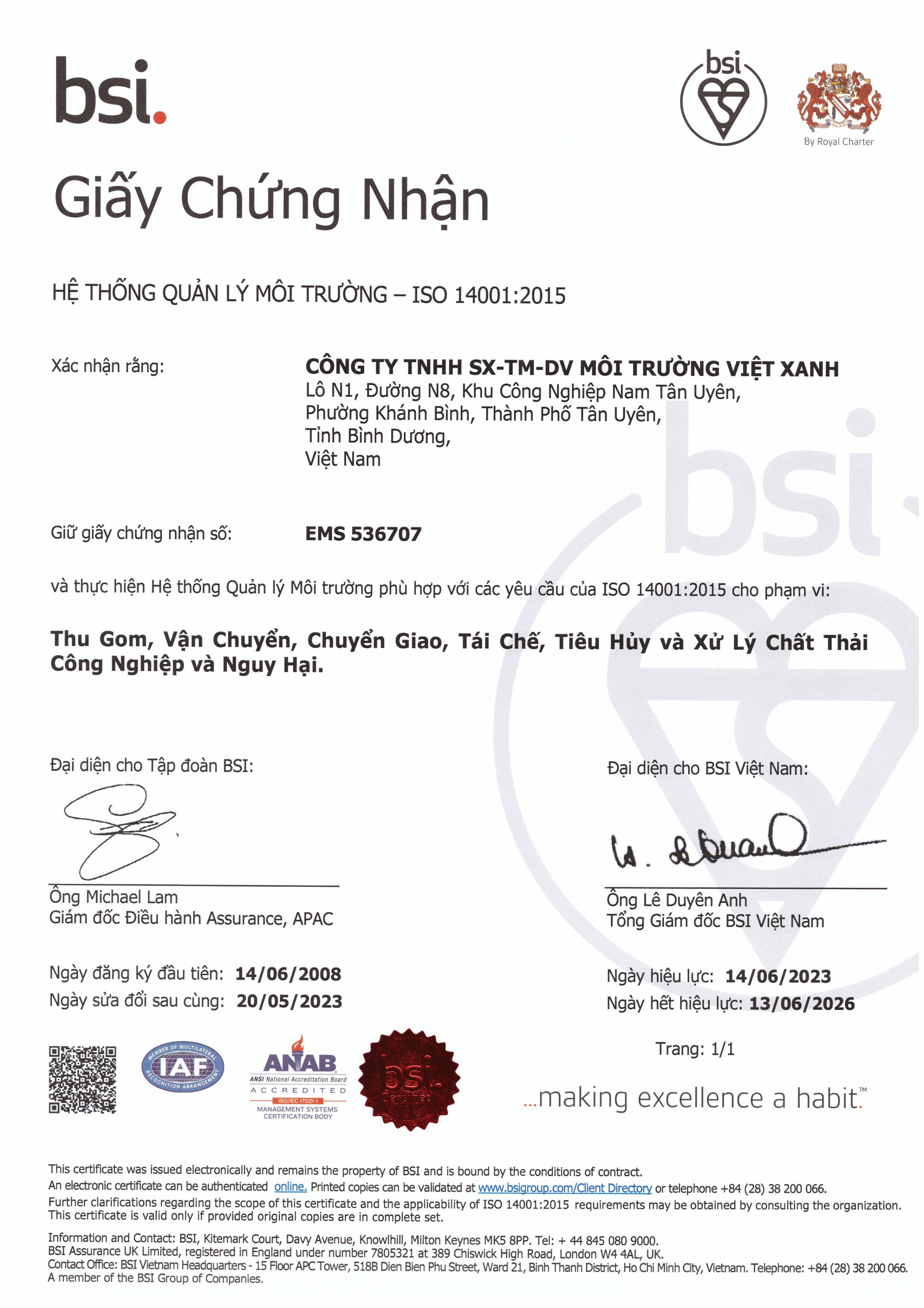 Chứng chỉ ISO 14001:2015